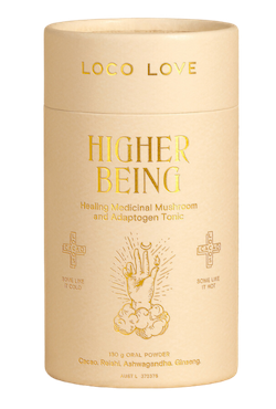 Higher Being is our cacao-based spirit smoother that blends the holy trinity of healers; Traditional Chinese medicinal mushrooms, ancient Ayurvedic plants, and Western Herbal roots. Combined with luxurious Peruvian cacao and monk fruit, Higher Being is a therapeutic love and wellness ritual. It’s a stepping stone to a higher vibration, a gateway to your higher self. Drink your way to calm, and clear the path for your Higher Being.